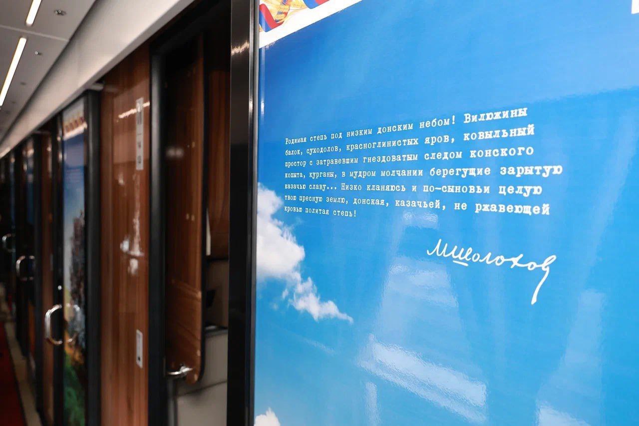 Сегодня внешний вид вагонов «Тихого Дона» выполнен в фирменном стиле РЖД, а интерьеры погружают пассажиров в атмосферу творчества Шолохова. Красочные плакаты с пейзажами Донского региона и цитатами писателя создают уникальную атмосферу, напоминающую о богатой истории и культуре Дона.