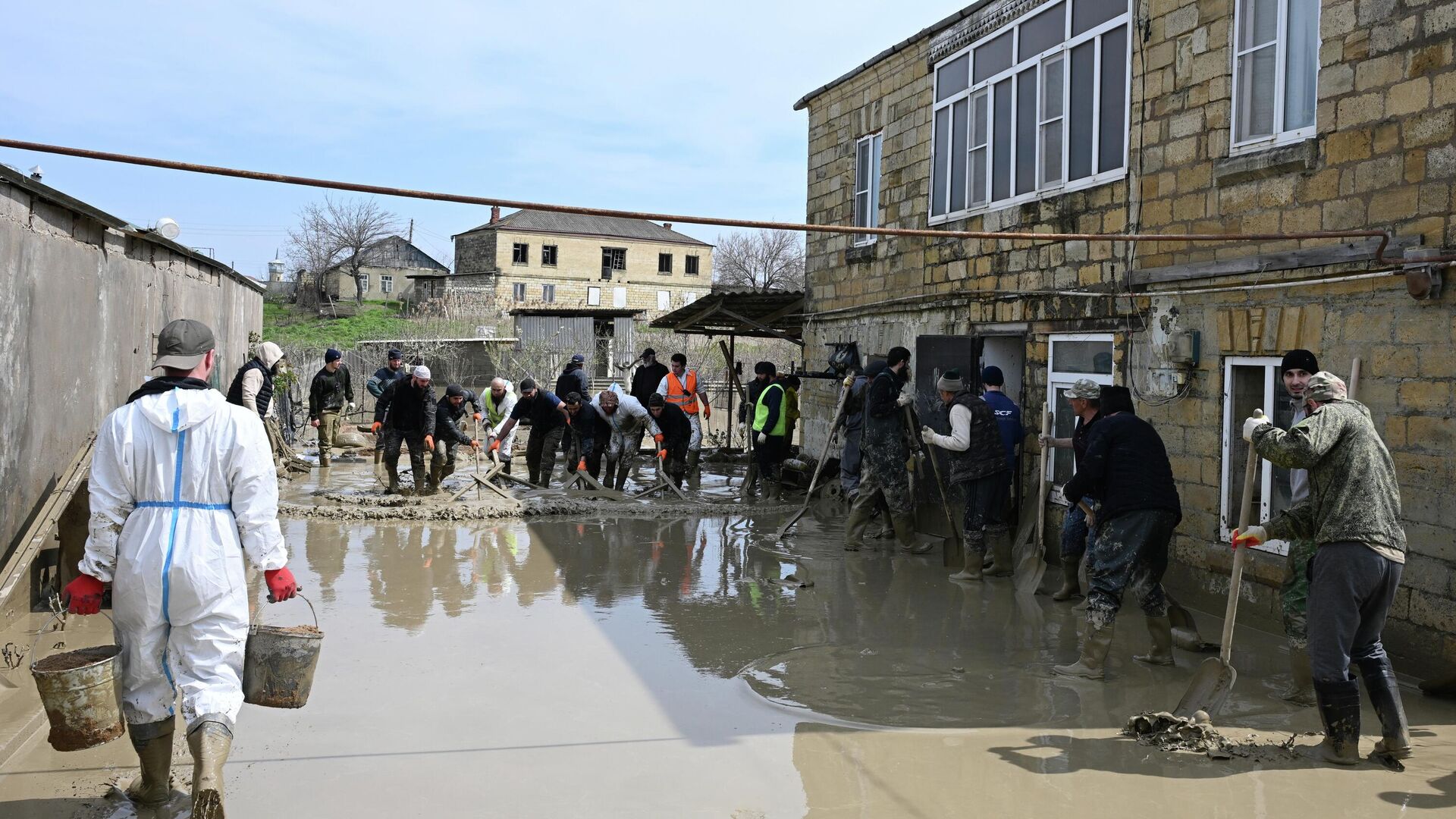 Все экстренные службы республики продолжают работать в пострадавших районах. Специалисты МЧС России проводят дезинфекцию и санитарную обработку, оказывают адресную помощь людям, а также помогают расчищать русло реки Дарвагчай, укреплять ее берега и отсыпать дамбы.