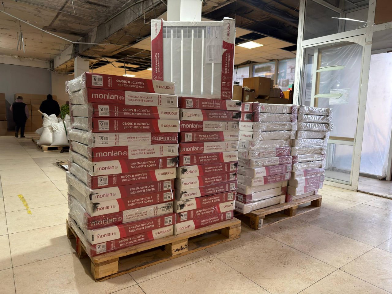 В состав груза вошли строительные материалы, сухой асфальт и 50 радиаторов отопления. Сухой асфальт позволит провести в муниципалитете локальный ямочный ремонт.
