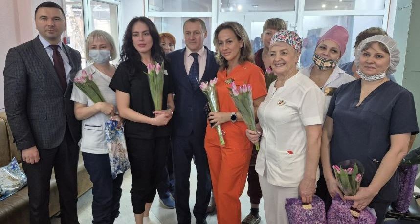 Депутаты фракции «Единой России» Законодательного Собрания Ростовской области, заместитель главы администрации Ростова-на-Дону по внутренней политике Андрей Косенко и представители 11 национально-культурных автономий Дона поздравили врачей и медсестёр военного клинического госпиталя Южного военного округа с наступающим Международным женским днём.
